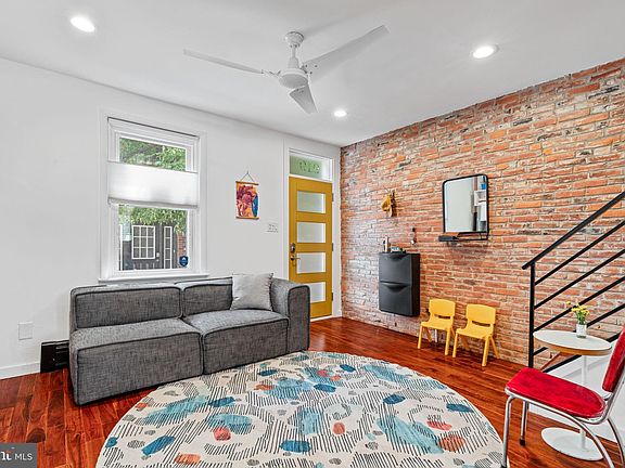 Literally in the heart of The Italian Market, 919 Hall St offers stylish finishes, great outdoor space, and endless convenience, especially if you like food. The first floor has an easy flow from the living room through to the kitchen. Exposed brick along the entry wall and wood burning fireplace along with the hardwood floors add original Philadelphia charm in contrast to the clean, modern teal cabinetry and white floating shelves in the kitchen. Stainless steel appliances, a hood with exposed duct, and panel front dishwasher round out the cheery, modern kitchen renovation. The back patio off the kitchen is large enough to accommodate grilling and a small table. The second floor has two nicely sized bedrooms, each with a ceiling fan, as well as a hall bath with white subway tile shower and well-thought-out storage solutions for towels and toiletries. The main bedroom also has a cozy reading nook tucked under the stairs and convenient access to the upstairs laundry. The top floor has a third bedroom with exposed beams, exposed brick, high ceiling, an en suite bathroom with shower and storage closet, as well as access to the roof deck. The roof deck is an ideal private outdoor space with shade for daytime and string lighting for the evening. The block has several trees and is low traffic since it is not a through street, though it will lead you out the door and straight to the Italian Market! With so many grocery vendors, specialty vendors, and restaurants within a few blocks, you’ll never be bored of your dinner rotation. Di Bruno Brothers, Villa di Roma, Fiorella, South Philly Barbacoa, Tabchoy, Blue Corn Restaurant, Angelo’s, Ralph’s, Anthony’s Coffee and Chocolate House and more are within 2-3 blocks! Several parks are also within 4 blocks, including Palumbo, Capitolo, and Ridgeway, which has a pool in the summer!