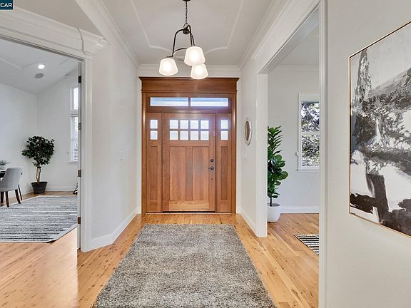 Exceptional location - Walk, bike, or a quick ride to the trails & downtown. 1 level just 21 years young on elevated lot. Low maint. yard w/ outdoor covered porches & patios for al fresco CA living. Attached 2 car garage, & extra driveway for 2 cars. Front wrap around porch for sipping a drink, morning coffee, or watching the sunset. Open & inviting. 10 foot volume ceilings and vaulted ceilings. Gas fireplace in family room & primary bedroom. French doors to front wrap around porch. Rear covered porch flanked by French doors from family room & primary bedroom. Wood plank ceilings; recessed lighting, at outdoor covered porch/patios. Kitchen w/ solid wood cabinetry, built in refrigerator, Miele dishwasher, built in Miele coffee/espresso maker, Dacor microwave & 6 burner cooktop. Kitchen island w/ sink. French doors w/ phantom screens. Main bedroom has workspace area, & walk in closet w/ organizers. Main bathroom has soaking tub, steam shower, bidet, & plentiful cabinets. Hickory hardwood floors in kitchen, family room, dining room, entry, hall & front bedroom/office. Tray ceilings & exceptional upgraded millwork. Close to commute, shops, restaurants, top ranked schools, & everything you love about Lafayette. Quality, comfort & location are yours with this Craftsman style home.