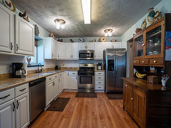 Looking for a Workshop, Mancave or just extra garage space, this 24 x 30 detach garage has it all. Another large one car garage is attached to this 3 bedroom 2.5 bath home. Plus a spacious driveway for extra parking. There is an open staircase from the livingroom to the finshed lower level that expands your entertainment space. A half bath, an office/bedroom plus a mini kitchen bar completes the lower level. You will love the spacious new kitchen with granite counter tops and stainless steel appliiances. Next to it is the dining area flanked by a woodburning fireplace. Updates in the last 5 years include additional insulation in the attic, a new furnace and air conditioner.