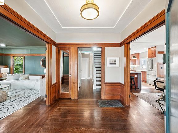 919 McKinley is a lovingly renovated Craftsman with new foundation and gorgeous open kitchen. This delightful home features original millwork with simple, clean lines, flat square edges, exposed joinery, and custom mantels & trim. This is the former residence of Jackie Jensen, arguably Oakland’s most interesting man*! The main level features quintessential Arts & Crafts style living & dining rooms with hardwood floors, fireplace and built-ins; a stunning eat-in kitchen with custom cabinetry, quartz countertops with waterfall edges, designer tile & Bosch appliances; recently update bathroom with marble tile and deep soaking tub; and a large bedroom with views over the rear yard. Upstairs are two additional bedrooms with solid oak flooring, a powder room and a radiant sunroom with southwesterly views over the Oakland skyline. The fenced backyard is a delight with a fire pit, raised vegetable garden, mature lemon tree, flagstone patio and synthetic lawn. A detached garage is well suited for use as an office. Cleveland Heights borders Lakeshore and Trestle Glen. Lake Merritt, Trader Joe’s, Grand Lake Farmer’s Market & Glenview are all within a mile. * Jackie Jensen is the first person to play in the Rose Bowl, World Series & MLB All-Star Game and won the AL MVP in 1958!