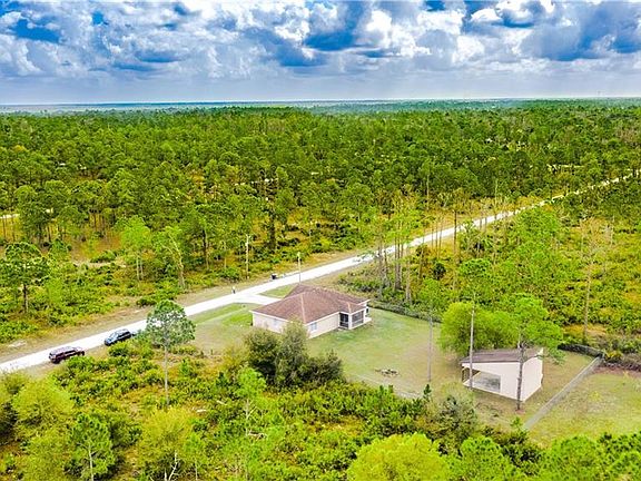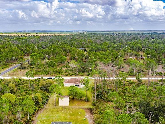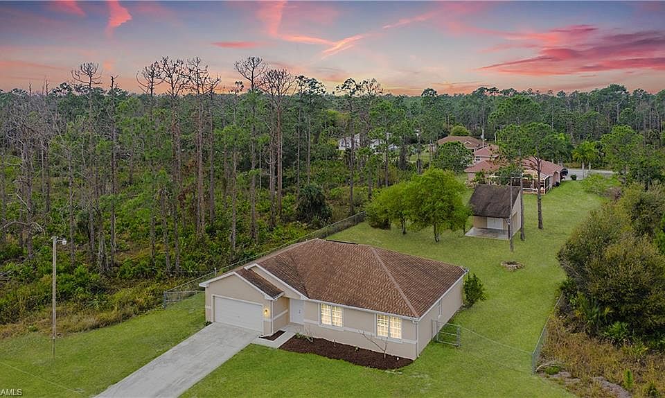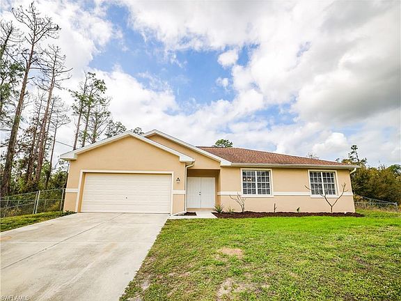 This Lehigh Acres, which sits on .50 Acres, which are Fully Fenced in a Private Setting has underwent an Extensive Fully Permitted Renovation transforming it into 1 of the most impressive homes to hit the market below $225k. From the Exterior you will find a New A/C System, New Water System, an Impressive Detached Storage Building with a Large Covered Concrete Pad Carport, New Exterior Paint, New Lighting, etc. Step Inside & be impressed with the 10Ft Ceilings, New Wide Plank Floors thru out the Main Living, Kitchen & Beds, New Interior Paint, New Crown Molding & 5 ¼" Base, New Fans, Lighting & Fixtures, New Doors & New Drywall thru out. The Upgraded Kitchen has Wood Cabinets with Quartzite Counters including a 1-Level Island, a Subway Tile Backsplash, S/S Appliances & LED Recess Lights. Both Baths have been Upgraded with Wood Vanities, New Quartzite Counters, a Stunning New Wood Plank Tiled Shower in the Master with a Rock Floor, New Mirrors, Lights, Sinks & Faucets. All 3 Beds are very Spacious. There is an under Truss Screened Lanai that has a Newly Painted Floor overlooking the Fenced Backyard. This one feels so private yet is within close proximity to Joel & Lee Blvd.