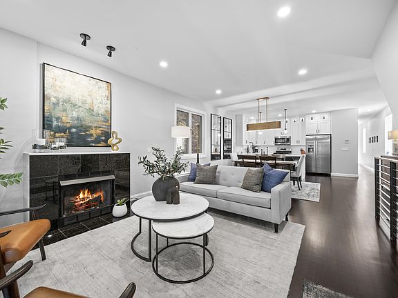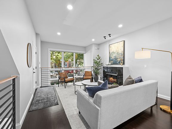 Beautiful 2,450 SF duplex down on a quiet tree-lined street in the heart of East Village. This gorgeous sun-filled 3 bed / 2.1 bath home lives like a single-family dwelling and showcases high ceilings, hardwood floors, two-story windows. It includes two distinct indoor living spaces and two outdoor living spaces that make entertaining easy and fun. The main level features a highly functional and open layout with formal living and dining rooms that extend back to an expansive kitchen. The kitchen boasts quartz countertops with a waterfall edge, a massive breakfast bar, beautiful glass subway tile backsplash, stainless steel appliances, and cabinet lighting. The main floor is finished off with a large primary bedroom that features a walk-in closet, large bathroom, and direct access to a private deck. The lower level with high ceilings offers two generously sized bedrooms, a full bathroom, and an additional family room living space. One garage parking space is included. The common areas feature meticulously maintained landscaping and a large artificial turf backyard. The location is ideal for commuters and provides convenient access to entertainment. Easy access to public transportation, the highway, parks, Mariano's, and restaurants, shopping, and entertainment on Chicago and Division Aves. Everything Wicker Park, East Village, and Ukrainian Village have to offer is within reach!