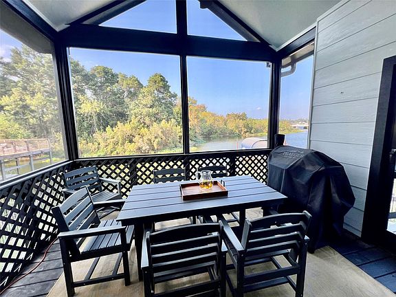 Waterfront Location! Neighborhood with lot of mature trees on Lake Conroe with dreamy waterfront views near all the action on the Southside of the lake. Boat straight to lakeside restaurants and stores with boat parking less than 10 minute boat ride from the house. There is a marina nearby. Set your boat in right from the neighborhood. Fish the days away or just relax in this 3 bedroom home with screened in balcony off of the kitchen and open balcony with stairs down to the backyard off of the living room. Relax on screened in patio or look at a the stars from the open patio on beautiful nights while the moon glistens on the water. This home with new serene interior paint color currently being used as a short term rental/second home but would be an amazing place to live full time. It's recently been freshly painted inside an out and windows changed. It comes fully furnished and has new beds. Airbnb or Second Home ready! It has been well kept over the years and is ready to enjoy! MISD