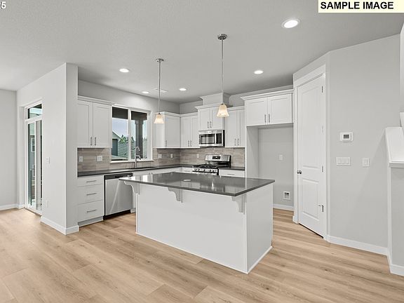 Move In Ready! Discover modern elegance in Faraday Hills, Estacada! This new 2,038 sq. ft. Craftsman home offers 3 bedrooms, 2.5 baths, and a 2-car garage. The open great room features an electric fireplace, 9 ft ceilings, and laminate flooring, flowing into a gourmet kitchen with quartz countertops, a large island, and stainless steel appliances. The primary suite boasts a walk-in closet and double sinks. Enjoy a fully fenced lot, front yard irrigation, and a spacious back deck with territorial views. Energy-efficient heat pump and A/C included. Sample photos, finished with vary. Come visit us at our sales office at 3675 NE Claire Rd. Open Wed-Sun 11am to 6pm.