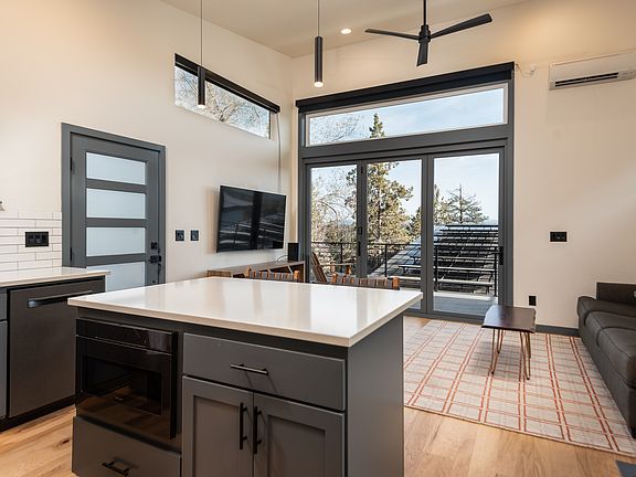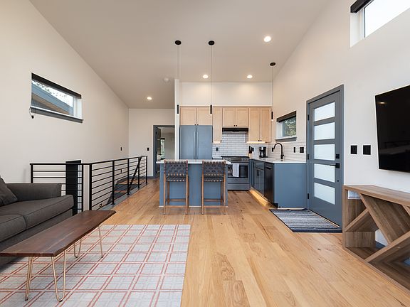 Unique opportunity to live in heart of Bend's Westside. Walk to Downtown, Drake Park, Newport Ave, the river trails, and more. Accordian doors open up to the main floor deck for views of Mt. Bachelor and national forest. The open floor plan features modern kitchen with high end Bosch appliances, island seating and vaulted ceilings. The south facing great room provides amazing sunlight. Lower level is great flex space for office, seating area, or second bedroom. Lower level deck provides access to side yard. The home acheives sustainability, luxury and functionality with a 10/10 energy score.