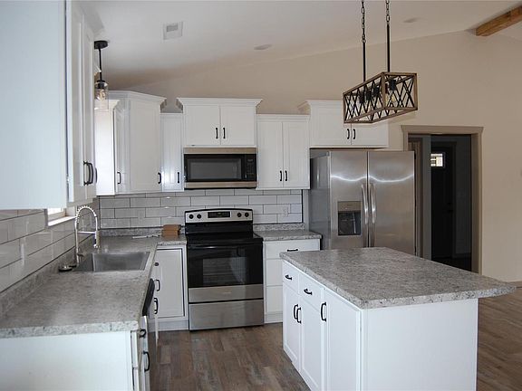 Beautiful, 3 bedroom, 2 bath all electric home was built in 2024 and has large kitchen with center island & stainless steel appliances. Home features custom motorized blinds in the living room and kitchen. Primary bath has 2 sinks & lovely tiled shower. Open deck in back. County living close to town. Make it yours today!