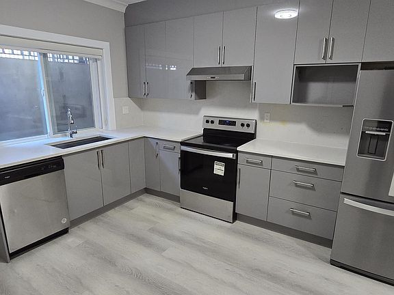 Welcome to this beautifully finished 2 bedroom basement suite that combines comfort, style, and convenience. This modern space features a sleek, contemporary kitchen complete with stainless steel appliances and ample cabinet storage. The open-concept living area offers a warm, inviting atmosphere with high-end laminate flooring and modern finishes throughout. Both bedrooms are generously sized with full closets, and the modern bathroom boasts a clean, updated design with elegant tile work and a full-sized tub and shower combo. Enjoy in-suite laundry, a private entrance, on-street parking, and convenient access to transit, parks, local amenities, and Burquitlam station. This thoughtfully designed suite is perfect for those seeking modern living in a quiet and family-friendly neighborhood.