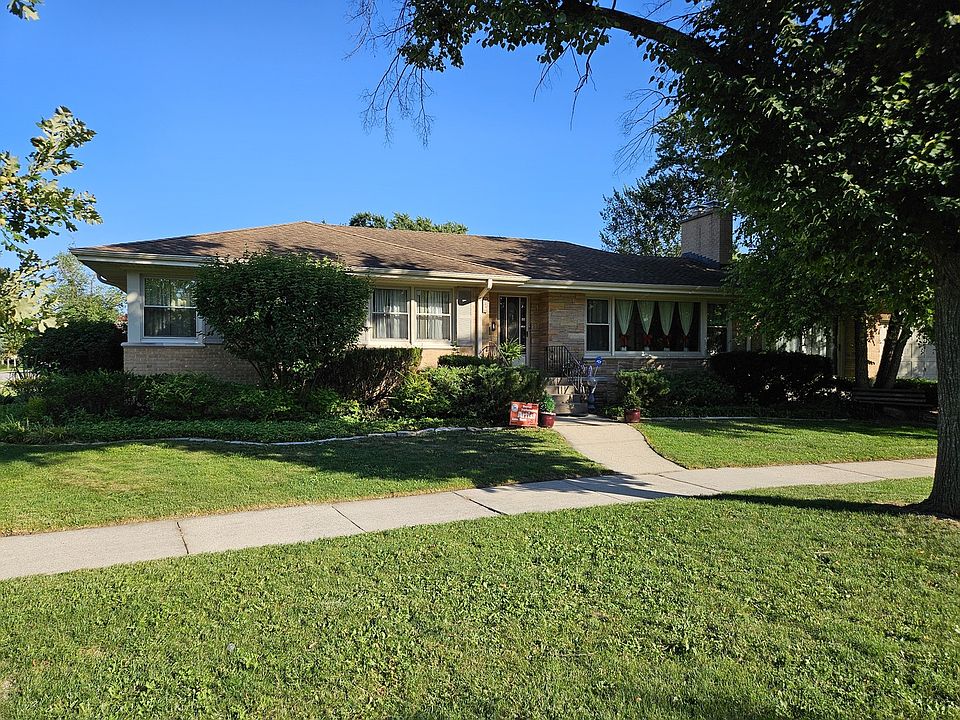 Outstanding Quality Yost Built sprawling all brick bright 3-bedroom 2.5 bath ranch in excellent condition on a large corner lot. Great location near school, parks, shopping & transportation. Home features coved moldings, oak floors, birch kitchen cabinets, 2 fireplaces, attached 2 car garage, 1st floor den, huge light & bright full basement, upgraded plumbing & electrical plus new windows, furnace & AC, and exterior soffits with lighting.