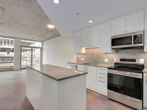 East-facing corner suiteFloor-to-ceiling windowsAiry modern loft aestheticAbundance of natural lightOpen-concept layoutUpdated kitchenQuartz countertops