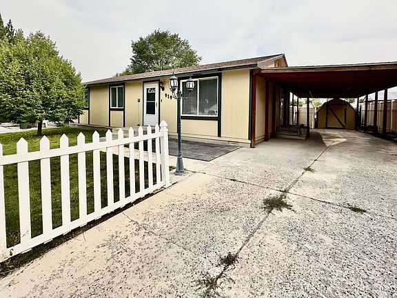 Discover this charming single-level home, featuring 3 bedrooms and 1 bath within 1,056 sq ft of well-designed space. Freshly painted inside and out, the exterior gleams, complemented by a practical bully barn. Step into an inviting open floor plan that seamlessly connects the living and kitchen areas. The kitchen boasts elegant granite countertops, stylish wood cabinets, and a brand-new stove/oven, all set against beautiful newer flooring that adds warmth throughout. This all-electric home includes a convenient laundry room equipped with wood cabinets, and the washer and dryer are included. The front yard features a sprinkler system, while the fenced backyard presents a blank canvas, perfect for your personal touch. Additionally, enjoy the benefits of a covered carport for your vehicles. Don't miss out on the opportunity to make this delightful home your own! Home is a modular.