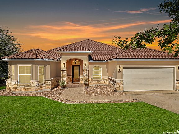 Discover the perfect blend of luxury, comfort, and timeless design in this remarkable custom home. Designed for Refined LivingExperience exceptional craftsmanship and sophistication in this stunning 3-bedroom, 2.5-bath residence, featuring a private study, media room, and formal dining area. The open-concept layout showcases soaring 14-foot ceilings, expansive windows, and abundant natural light, creating an inviting and elegant ambiance throughout. The gourmet kitchen is a culinary masterpiece, complete with cooktop, double ovens, built-in microwave, and an expansive granite island, perfectly complemented by a butler's pantry leading to the dining room. The adjoining living room centers around a beautiful stone fireplace, offering the ideal setting for both intimate gatherings and grand entertaining. Step outside to an impressive 600+ sq. ft. of outdoor living space, featuring a covered patio, outdoor kitchen, deck, flagstone patio and fireplace-an entertainer's dream for year-round enjoyment. The luxurious primary suite is a private retreat boasting a spa-inspired bath and a custom dream closet with direct access to the utility room for ultimate convenience. Every detail exudes quality, from wood and tile flooring and granite surfaces throughout, to built-in speakers in the living area. Additional highlights include a stone and stucco exterior, tile roof, foam insulation, and energy-efficient design. Located in the desirable NEISD within the sought-after Reagan High School zone, residents also enjoy access to exceptional community amenities, including a resort-style pool, tennis and basketball courts, playground, and clubhouse.