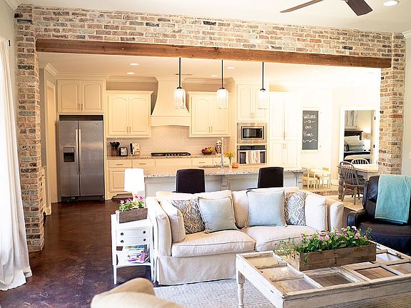 OPEN FLOOR PLAN! CULDESAC LOT! MASSIVE KITCHEN ISLAND!! BACKYARD PRIVACY! We hate to see this one go! Come see our beautiful 3 BR open floor plan house nestled in the culdesac of Woodson Bend just minutes from the Dogwood area in Flowood, MS. This home features an incredible kitchen and living room which is separated by a brick and cedar beam entry way. The kitchen features white granite counter tops with stainless steel appliances. Master bedroom connects to the master bath and all the way through to the laundry room. Master bath features double sided vanity with tile shower. Back porch area built for entertainment since the house backs up to the woods offering lots of privacy. Don't forget about the tankless water heater, water valve manifold, and C-SPIRE fiber internet! Don't miss out on one of the best looking houses in the neighborhood! Call me at 601-433-2918 to schedule a showing.