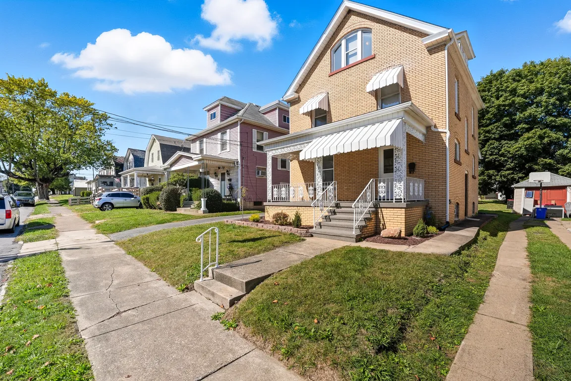 Detached garageNew hot water tankNew ductworkBrick homeTotally renovated main bathGlass block basement windowsNewer roof