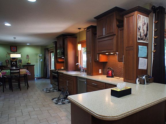 This is a very spacious ranch style home with over 3000 square feet on the main level. 4 bedrooms plus a main floor office/den area! Completely remodeled inside and out! Beautiful new kitchen with bar area. Front living room is currently being used as a large dining room with gas log fireplace. Large main floor family room with wood burning fireplace. Main floor laundry behind garage with tons of storage space. Two water heaters, furnaces and A/C units. Double lot with lots of mature trees and beautifully landscaped backyard with brick paver patios, lily pond with waterfall and firepit area. Playset and trampoline stay!