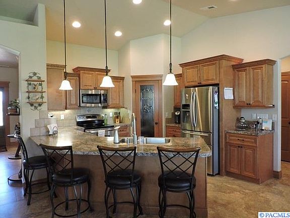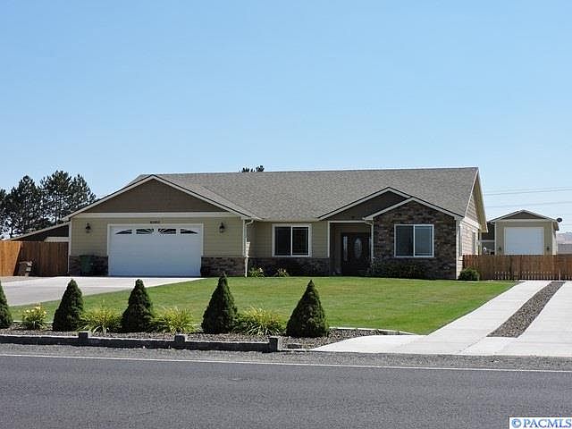 Say hello to your dream property in living color. This one story home was built in 2011 by SamSalee Construction and the quality of construction is wonderful. Featuring the great room concept with the master bedroom opposite the other two bedrooms. A Generously sized entry with a bedroom to your left and to your right. Full size bath with tile floor, tile accents above the bath along with a window for additional daylight. The great room is just that - Great! All spaces are generous in size and the flow is perfect. Vaulted ceiling with ceiling fan, gas fireplace to enjoy during the winter and lots of large windows for natural light. The kitchen features a breakfast bar, stylish cabinetry, tile back splash as well as continuation of the tile floor. The hallway to the the left of the kitchen is very open, no crowded feeling here, and leads to the master bedroom, laundry and the 2 car attached garage. All the doors into the home and within the home are 36" wide and their are no steps into the, not even from the garage, which makes this home handi-cap accessible. The master bedroom is quite large, 21'x18'. The walk-in closet is very large and also features a pass through cabinet door directly to the laundry room. The Master bath features dual sinks, walk-in tile shower, tube skylight and heated tile floor. The best thing about the laundry is storage galore! Okay, now lets talk about the shop. We are not talking small :) The RV bay is basically 18' x 55'. The door is 12' x 14'. Their is a room with double doors behind the bay and the total length of the shop on the right hand side is 72' long. Their are a total of 6 rooms in the shop including the RV bay and a loft. The left side of the shop is 48' long. The virtual tour will be the best way to get an idea of the layout until you actually walk the shop for yourself. Additional features to the shop include a workshop room with cabinets on two walls and air conditioning. Their is 50 amp service inside and outside the shop and the compressor that is in the shop is plumbed to most all the ground level rooms, both compressor and hoses are included. This dream is situated on 3/4 of an acre and animals are allowed.