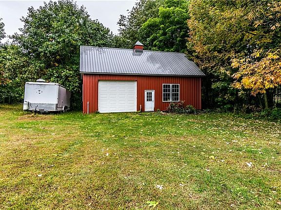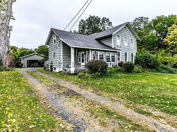 COUNTRY LIVING AT ITS FINEST! This well maintained Country Home in the Town of Lysander has 7+ acres of a mostly wooded lot, 2-car detached garage with work bench, and a 40x24 Pole Barn with stairs to storage above! The home has an enclosed porch in the front. You walk into an open floor plan with kitchen, dining and living rooms, a wood stove in the dining area and a massive stone fire in the Living Room (damper needs repair). Side entrance mud room, back entrance to deck. First floor bedroom, full bath and laundry room with counter for folding clothes. Second floor has three more bedrooms; the Master has a walk-in closet. Second full bath has heated tile floor! Home is heated with propane and boiler has 4 zones as well as heating the hot water. New windows throughout! THIS IS A MUST SEE TO APPRECIATE!!