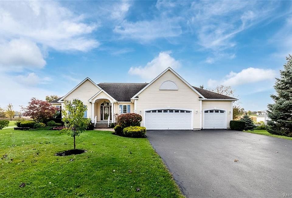 Spacious 2048 sq ft Clarence ranch-3 bedroom, 2.5 bath, 3 car att. garage, built in 2000! Open fl plan is ideal for entertaining. Large great rm features gas fireplace, cathedral ceiling, skylights. Dining rm has hdwd flr and sliders onto covered rear deck. The oak kitchen has loads of cabinets, island, pantry closet, ceramic fl and solid surf counters. Spacious master suite, WI closet & full bath. Beautiful landscaped lot, stamped patio, no rear neighbors. 6 panel drs, glass blk wind, recessed lighting, central air & vac. Quick access to the 990. Showings begin Thursday 12/9, delayed negotiations until Thursday 12/16 at 1:00. Open house Sunday 12/12 1:00-3:00. 2022-02-07