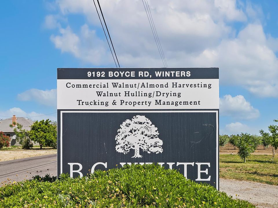This lovely home is situated in the beautiful coutryside of Winters. It offers 3 bedrooms, 2 baths, family room featuring a grand fireplace, kitchen, dining room and laundry room; all of which are very spacious! There is also an outdoor kitchen, pool, and a beautiful covered sitting area, boasting a large stone fireplace! Solar, which is fully paid for, powers the home and all facilities. The home is on 19 plus acres of agricultural land with Class 1 soil. The property provides productive almond and walnut cutivation, equipment and modern processing facilities. **Processing & Equipment:** - Custom-designed 6,140 sq ft Huller Canopy by Jessee Manufacturing featuring AIMS equipment and a walnut huller machine with a capacity of 12 tons per hour - Propane-powered dryer with a 113-ton capacity for efficient processing - Chemical storage shed for safe, organized chemical management - **Facilities & Infrastructure:** - Enclosed 30 x 40 shop with concrete floor, drive-thru capability, and roll-up doors - 30 x 30 office/restroom building with air conditioning for staff or management.3.2M LBS of Walnuts Dried in 2023!!. Go to DOCUMENTS FOR MORE INFO!!