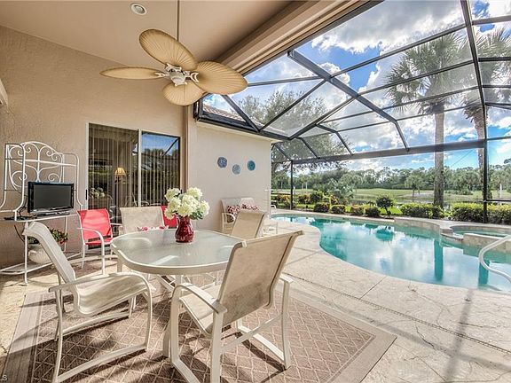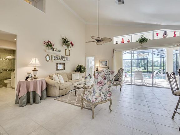 EXCEPTIONAL "LAUREL" with PANORAMIC WATER & GOLF COURSE VIEWS, on PREMIUM LOT in WILLOW CREEK in SPRING RUN. Quiet, private location, SW EXPOSURE, 3 BD/3 BA, POOL & SPA, Double Garage. The INCREDIBLE VIEW greets you as you walk in the front door & continues through your Great Room, Master Bedroom, Kitchen & Breakfast Room. The "Picture Window" Lanai screen frames the beautiful Water, Golf Course & Sunset views! Neutral Tile in main areas. Beautiful ivory colored Kitchen Cabinets, Quartz counter tops, remodeled Guest Bath, Storm Smart Shutters, Landscape Lighting, Pool Heater (2019), Water Heater (2020). Exterior painted in February! Spring Run is a Bundled Golf Community, 2 Memberships included in purchase of the home. Club House offers Fine Dining, Bar & Grill, Pro Shop, Fitness Room, Library, Pool & Spa, Lighted Tennis & Bocce Courts. 20 minutes to SWFL Int'l Airport & Beaches! Memberships available to Private Beach Club, Fitness & Spa Center, Enrichment Center & The Rookery Restaurant. Short walk to Coconut Pointe Mall for shopping, Restaurants & Entertainment. Spring Run is an Active, Financially Stable Community offering a wide variety of Amenities & Social Activities.