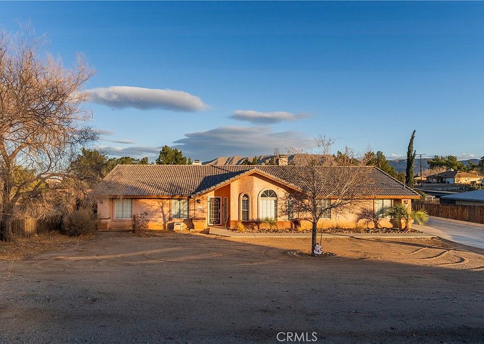 This spacious three-bedroom, two-and-a-half-bathroom home is located in a desirable area of Hesperia and offers approximately 1,742 square feet of comfortable living space. The home is nestled on a generous 19,000-square-foot lot, providing ample space for outdoor activities and potential future improvements. Upon entering, you’ll be greeted by an open-concept floor plan that seamlessly connects the large living room, formal dining area, and kitchen. The kitchen features beautiful granite countertops and a cozy breakfast nook, perfect for casual meals. For added warmth and ambiance, there are two fireplaces—one in the living room and another in the master bedroom, beautifully decorated with rocks. The master bedroom is a serene retreat with a sliding door that leads to the expansive covered patio, ideal for entertaining guests or enjoying peaceful outdoor moments. The backyard offers plenty of room for gatherings, while the front of the home adds curb appeal with a tile roof and a spacious three-car garage. Additional features include indoor laundry for convenience, a large yard with plenty of potential, and a design that will not disappoint. Whether you’re looking for a peaceful home to relax in or a space to host family and friends, this property has everything you need and more.