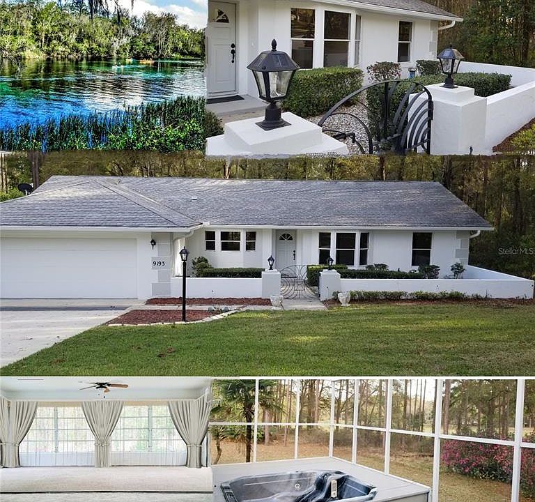 Better than NEW Construction--Welcome home to Rainbow Springs Country Club Estates ! Come see what the fuss is all about. WORLD renowned. Home of the Natural Spring fed "Rainbow River" - running and twirling for miles, full of color, excitement and wildlife. Live here, where you can enjoy the Natural Wonder and Beauty of the Springs All Year Round. This home is literally one mile from the private waterfront retreat of the springs. There's a private park, just for residents that grants direct access to this amazing river. There is always something new to go do or something to explore; both on the river or at the Country Club. Enjoy the trails by foot, bicycle or on your own golf cart, in this golf cart friendly neighborhood. Grab a tube and float down river for hours or grab a clear kayak, Maybe you will see a manatee or the playful otters swimming along. The colors of the River, are truly captivating. When your adventure stops for the day, come home and relax on the sundeck or slip away into the Jacuzzi, located just outside the master suite, where the sweet smell of orange blossoms will take you away. NO fear of bugs as the birdcage will keep you safe from pesky bug bites. If you prefer to avoid the summer sun, no worries , as the Lanai is also air conditioned, you won't have to miss the views or wildlife because of the summer heat. Easily ENTERTAIN with ALL of the doors OPEN on the lanai to encompass both sundecks, jacuzzi and the expanded Great room. OR... CLOSE them for added PRIVACY . Your spacious Lanai includes 4 hideaway sliding glass doors, 2 sets of sliding glass doors and 4 Tall windows. Year round blooming of flowers such as Azaleas, Camellias, & hibiscus bushes. Your elevated Lanai allows you to watch nature but still be in a temperature controlled climate. This home boasts over 2,042 living square feet and 3,253 total square feet for living the Florida lifestyle. Grill on your balcony, star gaze in the cool winter evenings or just enjoy the summer breeze after a long day. This home provides an open floor plan that is sure please anyone and helps take the stress out of everyday life. Choose the "Flex room" as your Separate Dining area, Media/Gaming Room or an Office. This home does not disappoint with its... 3 bedrooms, office, 2 full baths, 2 car garage (with garage privacy screens installed & workshop bench). This Home has added features such as elongated Garden Tub & built in shower bench . There's two courtyards, one just outside the window view of the master bath's garden tub, where humming birds like to visit the blooming hanging plants & feeders You wont miss the open courtyard just outside your front door either.. Upon arrival You will walk through the rot iron gate and past 2 new solar lights atop the squared pillars. This courtyard is blanketed with landscape rocks, which provide a bright back drop for the vibrant colors of the Azalea and Camilla bushes. . Open kitchen, Lots of counter space, Breakfast Bar, large Closet Pantry. In the garage: workshop bench & cabinets, Extra storage closet, Extra shelving, Extra Refrigerator, utility sink, HVAC with UV Filter, Sliding garage screens, water softener You can even store your golf cart , just below the sundeck Home is ready for immediate occupancy. Freshly painted inside and out. Tile in wet areas and New fresh carpet throughout. Neutral colors so you can choose your own color palette.