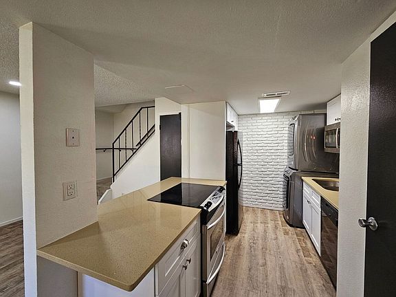 Modern updatesStylish finishesModern cabinetryElegant quartz countertopsPrivate connected one-car garageLarge walk-in closetBright and inviting layout