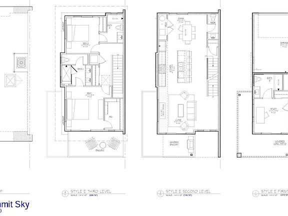 The Summit Sky plan offers 3 bedrooms, 4 bathrooms, a private entry-level suite or office, upper-level laundry, and an open-concept living area. The primary suite features a walk-in closet and spa-style bath. Optional gourmet kitchen available. EV-ready 2-car garage included.