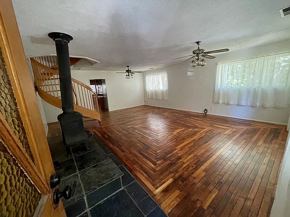 Up in the Pines. This Charming 3 bedroom home sitting amidst the forest on a quiet secluded street. Spectacular vintage for floors have been lovingly refinished and are ready for you to bring your stuff home. Two bedrooms on main level and 1.5 baths. Upstairs hosts big divided room for a master, or multiple beds, has been previously used as an artist's studio. Downstairs has two separate rooms and a wine cellar/pantry. Landlord pays for water and trash, which is at a centrally located area and you drop it off.
