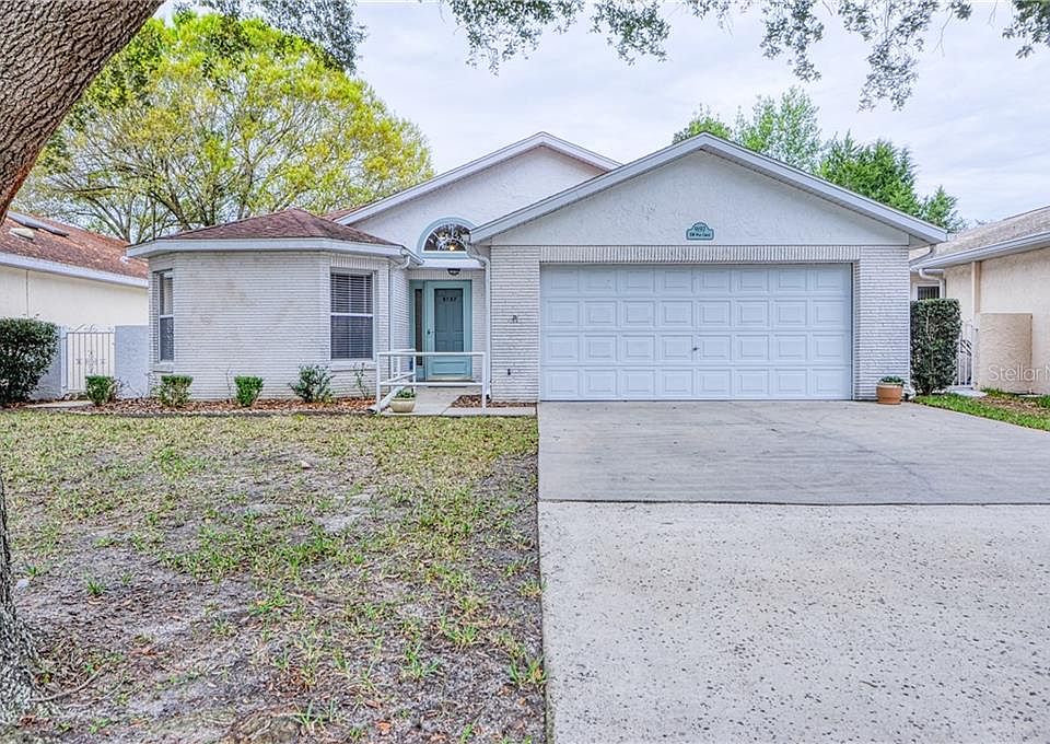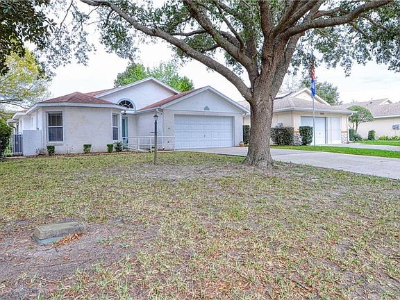Beautifully UPGRADED Hamilton Model Golf Course home located in the Williamsburg neighborhood of 55+ gated golf community of On Top of the World. Enjoy the expansive views of the golf course and brilliant Florida sunsets from the finished lanai with new windows or from your private courtyard. When you step inside the front door you'll enjoy the open space concept views through the great room and lanai to views of the Tee box! This home even has a small screened-in porch off the courtyard; LOTS of outdoor living space! Move-in ready 2 bedroom, 2 bath, 2-car garage home with new HVAC and hot water heater in 2019, and architectural shingle room installed in 2016! Neutral colored vinyl plank flooring throughout this split bedroom plan home with vaulted ceilings! Kitchen has granite counters and newer appliances. Eat-in kitchen area also with views of the golf course! The monthly HOA fee includes basic cable, irrigation, roof repair, exterior painting every seven years, exterior maintenance and insurance, landscaping, trash, 24/7 guarded gates and all the amenities that OTOW has to offer; three pools, two state of the art fitness centers, and much, much more! A golf cart community with access to three shopping centers. GOLF CART FOR SALE OUTSIDE HOME PURCHASE