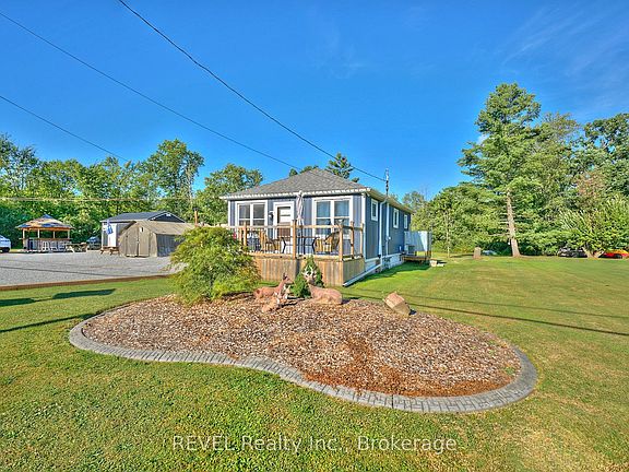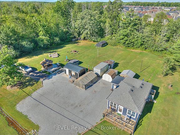 Welcome to 9197 Sodom Road, Niagara Falls a versatile property just shy of 1 acre in Chippawa. This 2-bedroom bungalow features a kitchen with a live edge countertop and walkout to the patio, a convenient mudroom entry, and an exterior shower. A separate office building with A/C provides additional workspace, complemented by 4 sheds and a shipping container for storage or hobby use. One of the sheds even includes a wood fireplace. Located near new developments, including the upcoming arena expansion and beautiful new homes sub-division, this property offers excellent potential for a builder, business owner, or anyone seeking more space. Chippawa Creek and boat launch are nearby. Property is being sold as is. Buyer to perform due diligence.