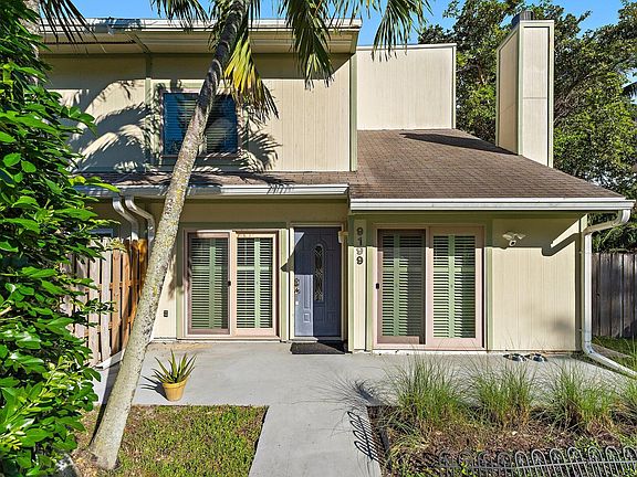 Updated townhome with modern style and no HOA! Bring your toys--the privacy fenced back and side yard can accommodate your boat or RV with plenty of room for a pool or entertaining. Inside, the open kitchen features quartz countertops, sleek cabinetry, stainless steel appliances, and great storage. Natural light fills the living area with ceramic tile floors, plantation shutters, impact windows & French doors, and a wood-burning fireplace. Upstairs are two bedrooms--a flex use loft-style suite and a spacious primary with a spa-inspired bath featuring double vessel sinks, a Kohler tub, and floor-to-ceiling tile. The first-floor bedroom and full bath are perfect for guests or a home office. Near beaches, dining & shopping--move-in ready! Schedule a showing now. Easy to see!