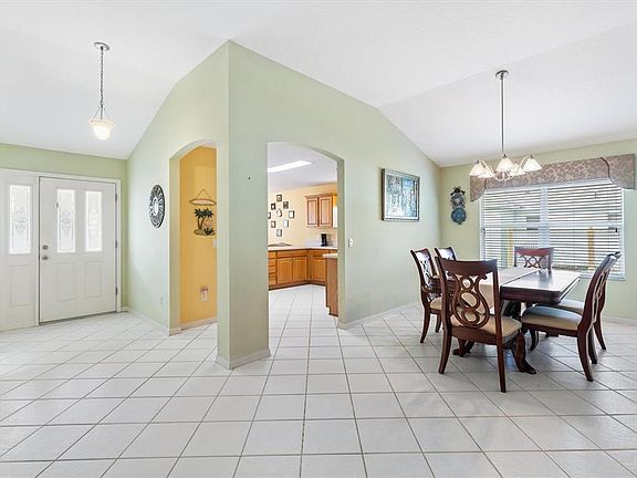 TURNKEY!LOW BOND Lovely 3/2 Cypress Designer home in the Village of Woodbury. Roof 2020, HVAC 2021 and Gas HWH 2002. This charming split floor plan features a covered front porch that invites you inside to discover ceramic tile flooring throughout. The eat-in kitchen is a highlight, boasting a breakfast bar, pantry, and convenient pull-out cabinet shelves. Enjoy casual dining while looking out the bay windows in kitchen or formal dining in the dining room. The spacious living room seamlessly connects to an enclosed lanai, which also provides access to the third bedroom. Sliding Doors in the Lanai lead to the back birdcage expanding your outdoor entertaining space. The master bedroom offers a large walk-in closet and an ensuite bath with dual split vanities, a built-in makeup table, and a shower with a built-in bench, ensuring comfort and style. The two guest bedrooms share a bath with a shower-tub combo, making this home ideal for family and guests. The third bedroom is currently set up as an office. Additional features that make this one special are: phantom screen door, interior laundry, coat closet, electric roll down garage screen, ceiling fans, solar tube in living room and guest bath, and cornices on all the windows adding to the home's charm and functionality. Just ½ mile to the Springdale Pool. Mulberry Regional Rec Center and Mulberry Grove Plaza Shopping Center for activities, dining, and shopping are just minutes away. Short golf cart ride to Spanish Springs and Lake Sumter Landing town squares. Call today to schedule your private showing and start living The Villages dream.