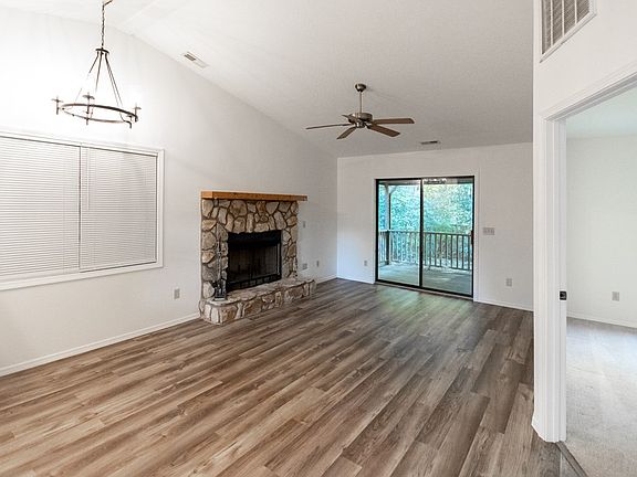 Spacious bedroom suiteScreened porchAttached garageGenerous closet spaceOpen-concept layoutCozy stone wood-burning fireplacePrivate outdoor storage closet