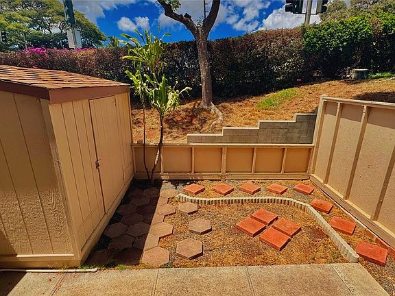 Welcome home to Palehua Gardens! This beautifully renovated townhouse has no units above, below, behind or on the right side! One of two units in this building with the reserved parking stall is 2nd stall from the building. The two bedrooms, full bathroom and laundry closet are on the upper level. The galley kitchen has a pass through to the open concept dining-living room. Bright and airy indoor - outdoor living! The fenced in courtyard has a large storage unit. This is a hurry and must see!