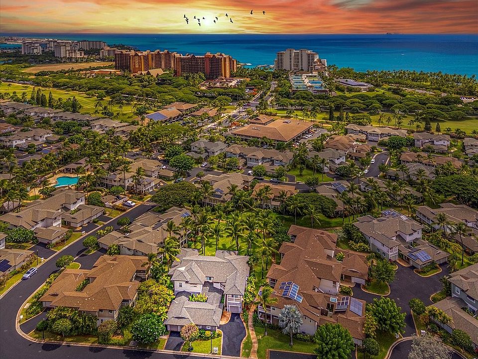 Experience the best of island living in this beautifully appointed Ko Olina townhome, where luxury meets the timeless charm of Hawaiian plantation style. Surrounded by coconut palms and furnished with island-inspired décor, this 2BR/2BA retreat is ready for 30-day vacation rentals or your own private escape. The open floor plan features a gourmet kitchen, sun-filled living spaces, and a versatile layout designed for comfort and flexibility. Step onto your spacious lanai and enjoy unobstructed garden views, perfect for breezy indoor-outdoor living. Located in the highly sought-after gated Coconut Plantation, you’re just steps from the pool, spa, lagoons, golf, dining, shopping, and scenic paths. Highlights include a walk-in closet, hidden storage, covered lanai, 1-car garage plus curbside parking. Overlooking the Ko Olina Golf Course fairways, this home offers unmatched privacy and tranquility. Vacant, easy to show, sale includes all furnishings, TVs, kitchenware, cutlery and turnkey vacation rental inventory from linens to beach floaties and sold “As Is.” Don’t miss this rare opportunity—your island lifestyle starts today! Seller prefers Elizabeth Spalla - TG Pearlridge Branch.