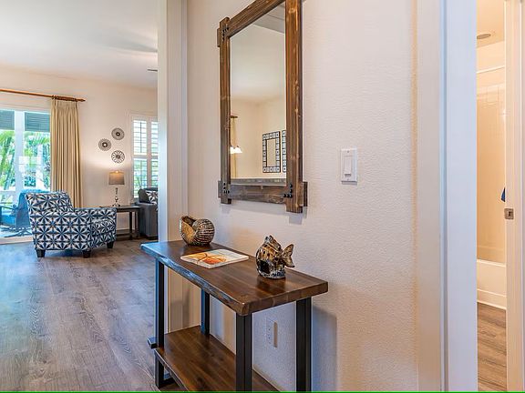 The primary suite is a spacious sanctuary featuring a Hybrid king-size bed with memory foam, ensuring a restful night's sleep. The room offers direct access to the lanai, allowing for private moments of tranquility. The primary bathroom is a highlight, with a uniquely large shower, two vanities, and ample drawer space.