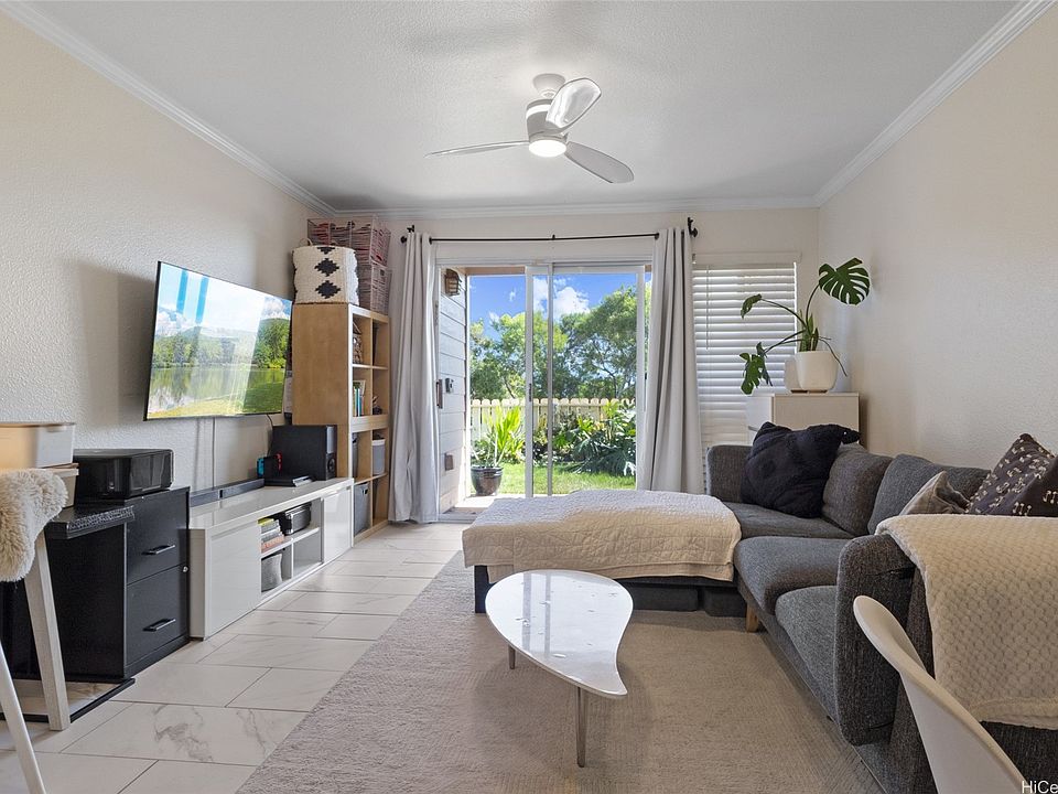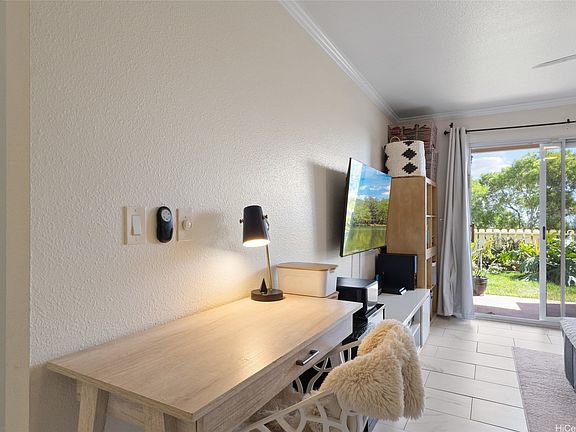 Welcome to your ideal retreat at Westview at Makakilo! This inviting ground unit boasts an expansive backyard that offers stunning views, perfect for relaxation or entertaining. The home features 2 bedrooms, 2 bathrooms, and comes with the convenience of 2 assigned parking spots. Enjoy a modern culinary experience in the updated kitchen, which was thoughtfully renovated in 2018 with stylish wood cabinets, sleek quartz countertops, and premium stainless steel appliances. The bathrooms were updated the same year and include elegant mosaic glass inlays. Additional highlights include a new full-sized front load washer and dryer and beautiful ceramic flooring throughout. This home promises a comfortable and serene lifestyle. Don't miss the opportunity to make it yours!