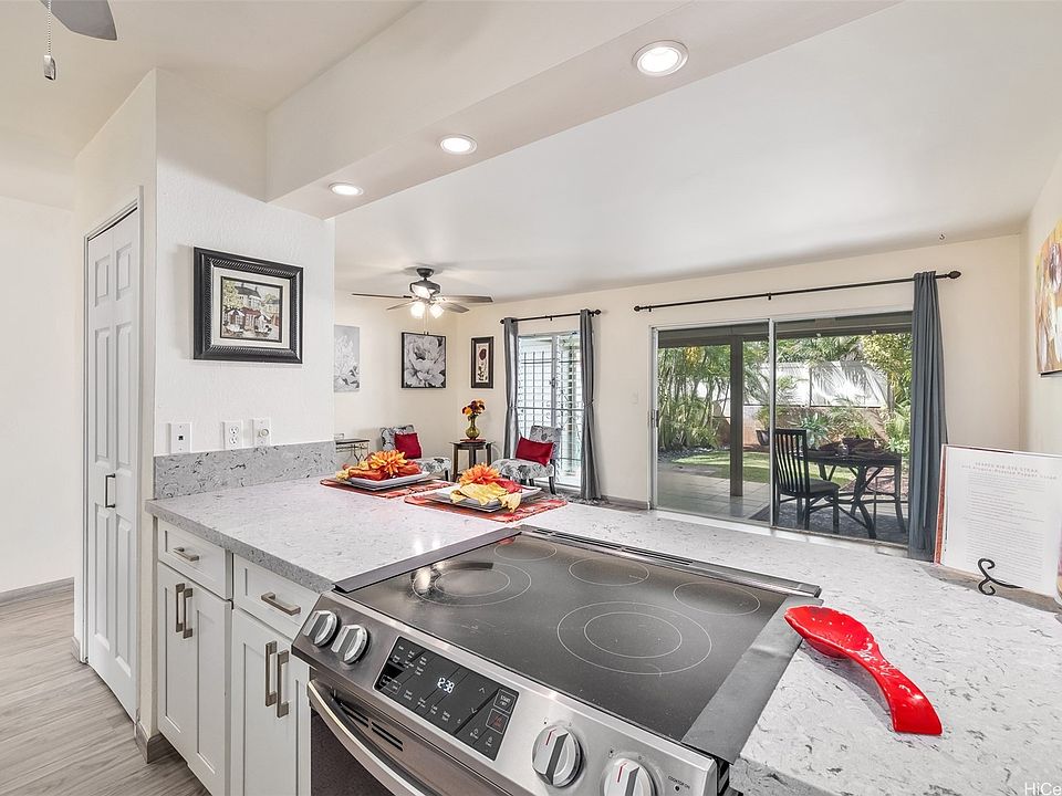 VA ASSUMABLE LOAN - 3.25% Interest Rate, gap of approx. $40,000, monthly payment of $2,950, low HOA, available to qualified VA Buyers! Welcome to this beautiful 3-bedroom, 1.5-bath home in the highly desirable community of Palehua Hillside in Upper Makakilo. Enjoy the cool breezes and tranquil surroundings this area is known for. The remodeled kitchen features upgraded countertops, cabinets, and stainless-steel appliances. The home offers fully enclosed front and back yards, providing space to entertain or relax on the back lanai. This home includes 12 owned PV panels to help reduce electric costs. Motorized hurricane shutters enclose the downstairs patio, providing added functionality and privacy. Washer and dryer in unit. Pets are welcome. Parking is convenient with one covered parking space, one open parking space, and ample street parking for guests. Conveniently located just minutes from the second city of Kapolei, where you’ll find shopping, dining, and entertainment options, including Costco, Target, Home Depot, and Disney’s Aulani Resort. Easy access to military bases: 16 miles to Schofield Barracks/Wheeler Air Base and 18 miles to Pearl Harbor/Hickam AFB.