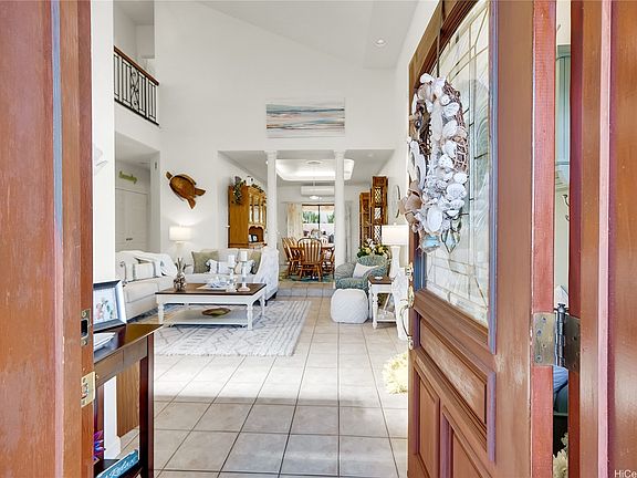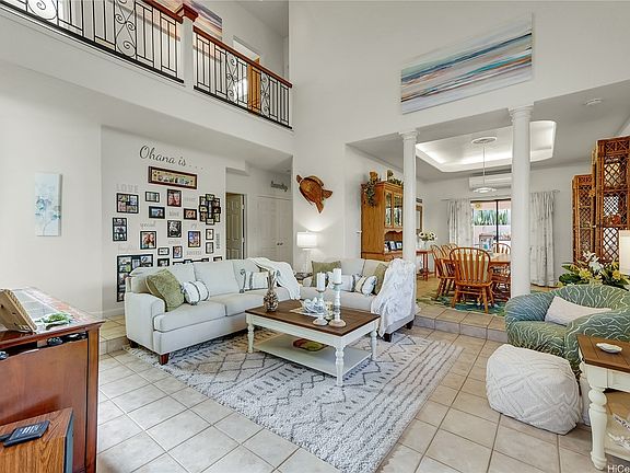 Custom-built residence tucked away on a peaceful cul-de-sac in one of Makakilo’s most sought-after neighborhoods! This completely renovated 4-bedroom, 3.5-bath masterpiece blends modern luxury with timeless island charm. Step inside to soaring high ceilings and a thoughtfully designed floor plan that includes a possible mother-in-law suite with its own private entrance—perfect for extended family or guests. The gourmet kitchen, equipped with high-end appliances and quality upgrades, is a dream for those who love to cook and entertain, seamlessly flowing into the formal living and dining areas. Enjoy Hawaii’s indoor-outdoor lifestyle with a spacious backyard lanai, ideal for gatherings, BBQs, and relaxing evenings under the stars. Upstairs, a cozy family room invites you to unwind with a favorite movie, while the bedrooms offer comfort and retreat. Surrounded by lush, professionally landscaped grounds with exotic flowers and tropical plants, this home truly feels like a private oasis. Every detail has been carefully curated to create a space that is both luxurious and welcoming. Easy drive to Kapolei the second city of Oahu known for its quality restaurants and shopping options.