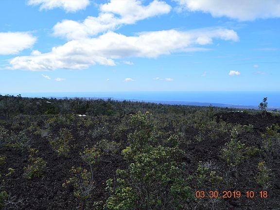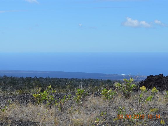 Located in Hawaiian Ocean View Estates - incredible ocean views for miles from this partially graded 89 ft x 489 ft one acre lot with nicer homes nearby. There's a clear view of South Point and west along the coastline. Approximately the front 200 ft back from the road has been graded in the past and the lot has two fairly level tiers with small vegetation throughout. What a great place to build your dream home! Seller has staked the lot in May of 2019 and will not pay to re-stake - all stakes should be visible. Less than 2.5 miles down to Ocean View Town Center for shopping and other services and the lot is located in the lower third of the subdivision. Per Helco, the SSPP assessment is $3,329.00 and will not need to be paid unless buyer wants conventional power. Sellers will consider short term financing with at least $2,500 down on approved credit and a full price offer.