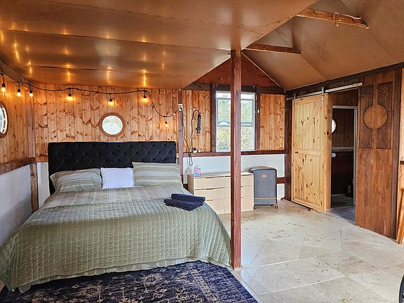 MOVE IN READY! Welcome to this enchanting boho chic cabin, set on two acres of picturesque land! The property features a plunge pool harmoniously integrated into the landscape, with easy fill access from the street and a water holding tank. Surrounded by unique landscapes, this home offers privacy and tranquility for peaceful living. Enjoy multiple seating areas with breathtaking views of the ocean, a lava tube, and artistic landscaping. Ideal for evenings under the Milky Way and mornings greeted by the sunrise!