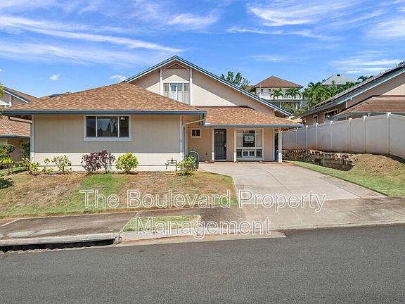AVAILABLE NOW! Charming 3-bed, 2.5-bath,2-car parking garage single-family house located in Upper Makakilo. Spacious interior with a gourmet kitchen to host guests, and back yard for weekend BBQ's. Tucked in a culdesac in a serene neighborhood away from the city makes this home the ideal getaway. Minutes away from the freeway entrance, grocery store, restaurants, and golf course. Enjoy the island life with this beautiful rental opportunity.