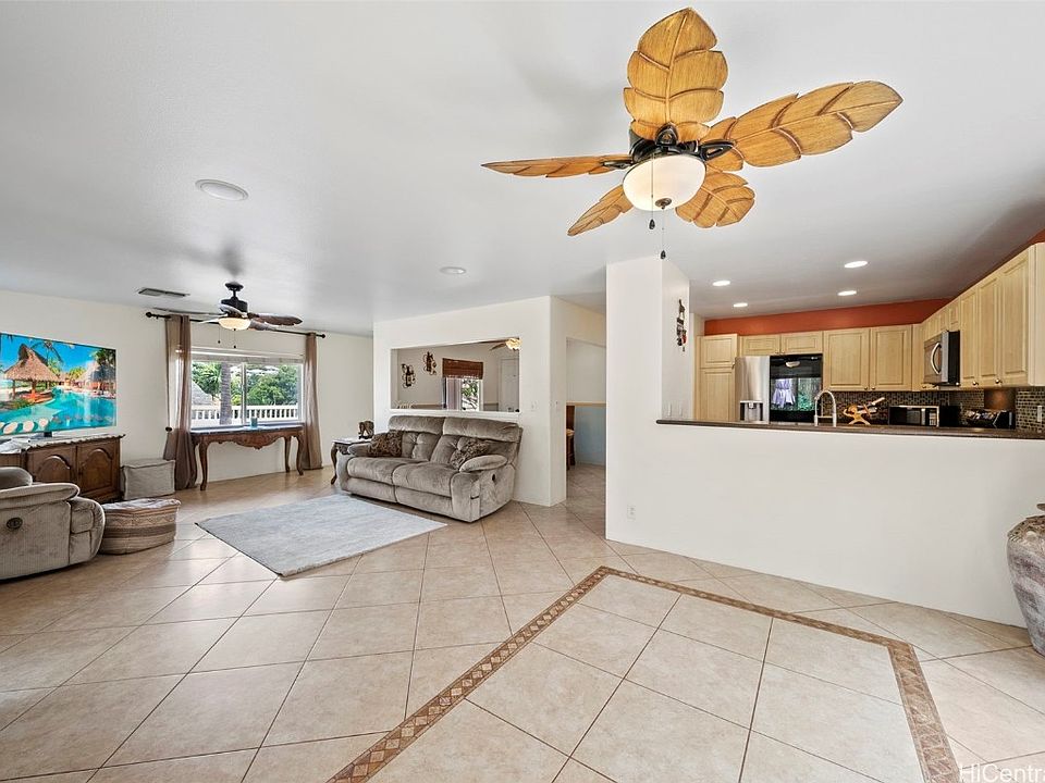Sunrise to Sunset, come home to Anuhea (cool fragrance), high in the hills of Makakilo. A blend of charm and modern conveniences, this home is a great escape from the maddening crowds. You'll want to make this your forever home with over $70K in upgrades and improvements, which include: 36 OWNED PV Panels, TWO Tesla wall batteries, Tesla 80-amp Electric Vehicle charging hookups in garage, two 2022 BOSH 20 SEER AC units with new WIFI thermostats. Experience the privacy and security investments of gated wraparound walkways, underground sprinklers, cipher lock entry door, Wifi encrypted security cameras, and more. From the rear lanai enjoy the spacious yard's garden, with avocado, peach and palm trees. The unique layout boasts three bedrooms plus a bonus den, and three full baths, peek-a-boo ocean views, stainless steel appliances, tile and laminate floors. By Appointment only. VACANT, easy to see. FIRST OPEN SUN 8/6, 2-5PM.