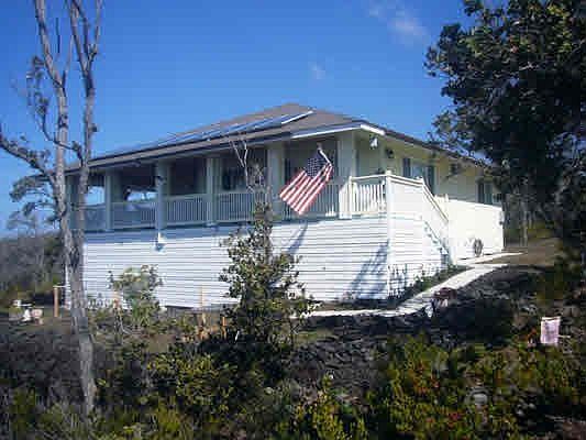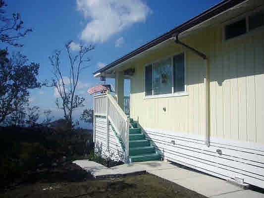 Overlooking incredible vistas of South Point and the ocean, this fully self-sufficient home is situated at the edge of the subdivision at about 3900? elevation. This beautiful home features an HPM Lauhala floor plan that has been modified to better take advantage of all 1345 square feet of living space. The master bedroom runs the entire width of the home and has sufficient space for a sitting area. There?s a walk-in closet, and a spacious master bath with artistic marble work and a vanity with a granite countertop. There are vaulted ceilings in the living area, tile floors, and tile kitchen countertops. The large, comfortable lanai is accessible both from the dining area and the master bedroom through double French doors and is perf