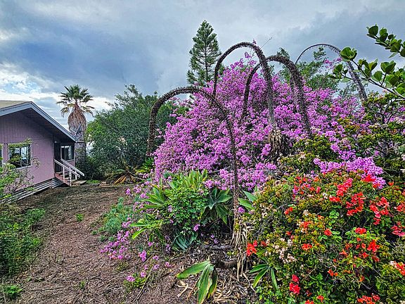 Value and flexibility in a tropical setting—this property appraised at $310,000 this year and offers outstanding potential for a private retreat or investment. Set behind an electric gated entry on two lush acres, the home welcomes you with a freshly painted front, newly stained lanai, and mature citrus, avocado, mango and ornamentals reflecting years of thoughtful landscaping.