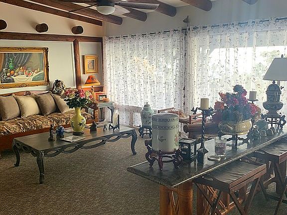 Lovely well built single level home with fabulous views of the shoreline and beyond.This home has a very desirable floor plan with many well appointed features. Vaulted hewn wood beam ceilings and bay windows are just a few of interest.Wrap around deck with private areas to sit and enjoy the gentle tropical breezes. The master bedroom suite is very large with lots of windows,walk in closet as well as additional closet storage. Luxurious master bath has jetted tub and seperate shower. Too many wonderful features to list here. Hurry and schedule an appointement today to view.