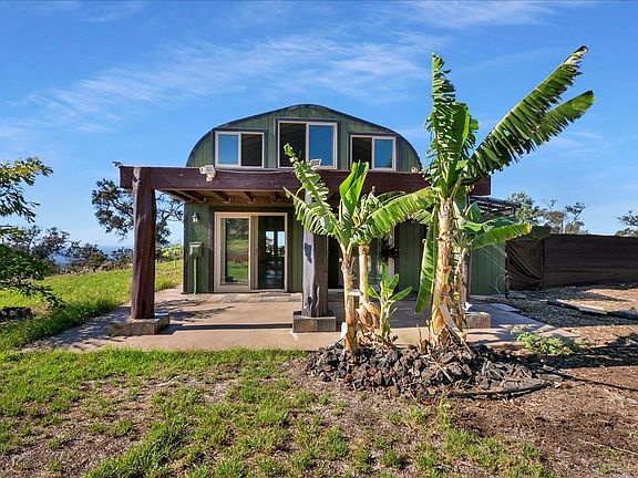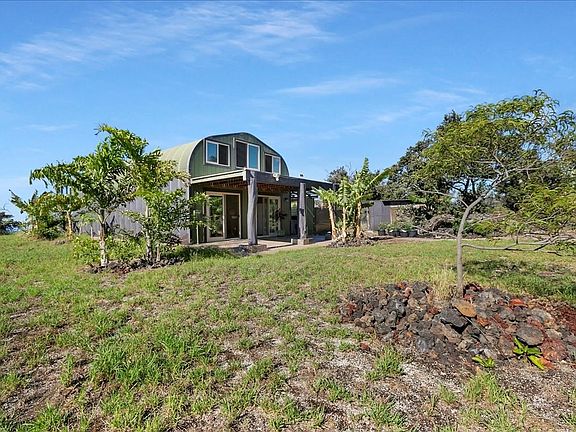 Property is located in Hawaiian Ocean View Ranchos & features sweeping views of the coastline & South Point. This community is located conveniently between Kailua-Kona & Hilo in the Ka'u District. Ka'u is famous for its fishing, raw untouched coastline, & its numerous outdoor attractions. This magnificent home shines with craftsmanship & quality everywhere you look down to every last detail. The perfect match of cedar interior walls paired with metal exterior for a virtually termite proof combination. Some of the standout features are Quartz kitchen counters, newer appliances, double gas oven, garbage disposal, dishwasher, Rinnai instant hot water heater, UV WATER FILTRATION, washer & dryer, outdoor shower, & don't forget the Hot Tub! When one enters into the home you will notice the great flow from the kitchen to the living room or up the grand wooden staircase. The large native Ohia tree post will guide you up to the loft bedroom & out to the lanai. Sit for hours enjoying the island breeze & picturesque view of the coastline, the horizon & the waves breaking down below. Open up the custom wooden French doors & let the fresh air circulate through the house while you socialize with friends & family. When it is time to visit the "Wet Bathroom" you will not be disappointed. You will be in Zen when you wash off your day and settle down to relax. The double shower heads are powered by the large pressure tank & pump supplied from 20,000 gallon water tank. The Hurricane Industrial home is constructed of galvanized aluminum & painted inside & out. (Rated to withstand 200 plus mph winds!!) The measurement are 45 ft long by 20 ft wide & the high top is 17 ft. 400 ft of underground electrical to the house, lot is completely hog wire fenced with a gate at the entrance, 16 ft x16 ft chicken coop, storage/work shed, & a lot of cinder soil for the landscaping. Many business already Fronting HWY 11 and a "special use permit" might be obtainable by new owner.