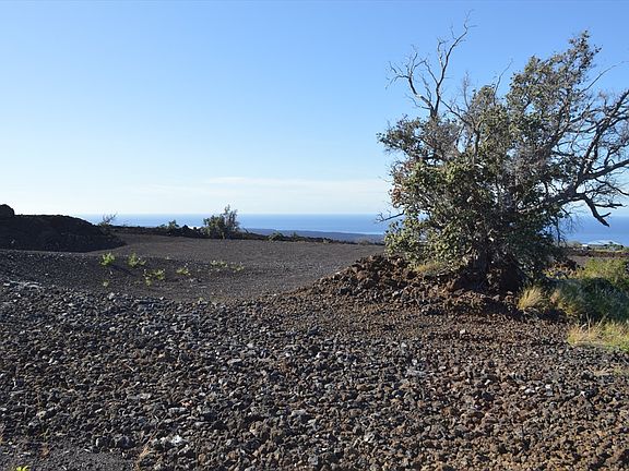 The site prep work has already been done on this nearly square 3-acre parcel in Hawaiian Ocean View Ranchos. Stakes are visible and several driveways have been cut in, as well as terraced building sites. The South Point and ocean views are expansive and amazing! Several large ohia trees remain on the property for shade and windbreaks Stakes are visible, per Seller. Located just a short drive up the road is Pohue Plaza, with Malama Market, a thrift store, gas station, garden shop and more. About an hours drive south of Kailua-Kona for major services.