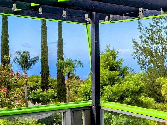 This 2 bedroom 2 bathroom house features open beam ceiling and tile floor through out. The home is situated in a green belt within the subdivision hence the lush landscaping. This house boast a view of the ocean while relaxing on the covered back porch. This wide lot in Hawaiian Ocean View Estates is planted with a macadamia orchard, bananas, citrus and other fruit trees. Within the orchard there is a detached studio perfect for relatives and guest. The house comes furnished. Very large catchment tank and UV filtration.