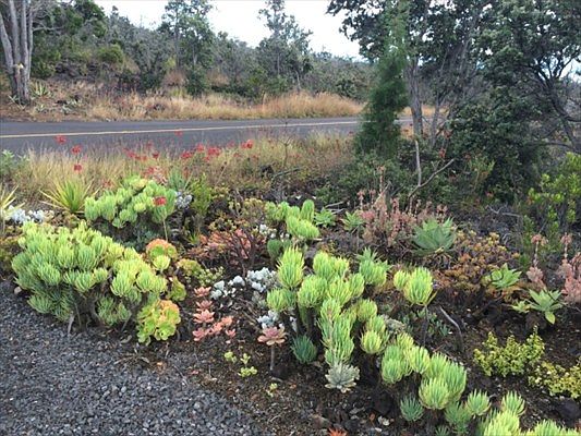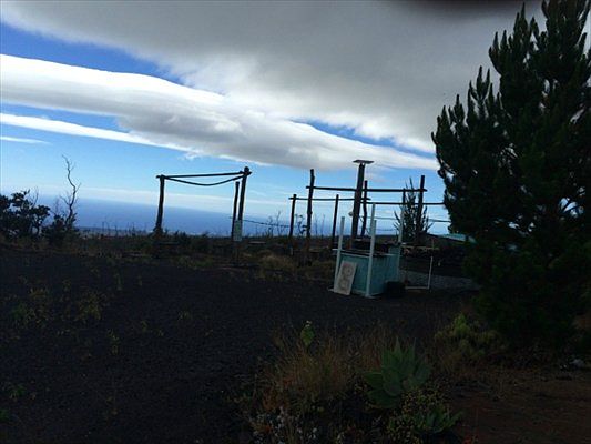 This was the home of Ka'u Palms and is a very improved wide one acre lot that is waiting for the gardener, or owners that appreciate a fairly flat terrain, with FANTASTIC sweeping Ocean, Coastline, Horizon and Sunset views.. Beautiful iron gate with rock posts, and a nice flat area for your housepad.. There is a large water catchment tank on the lot and included. Huge Ohia Posts are there for a frame and are 3' into the ground and in concrete. Beautiful Rock wall posts at the gate. Great opportunity to move on and build your dream house on a very superior lot.. There is a Hawaiian Ocean View Estates Road Maintenance Annual fee of approximately $110 for every lot owner. Water catchment throughout. Electric and telephone are available at the street, and going GREEN and living off the grid would be perfect here.. Ocean View is just 50 miles south of Kailua-Kona and is a welcoming community.
